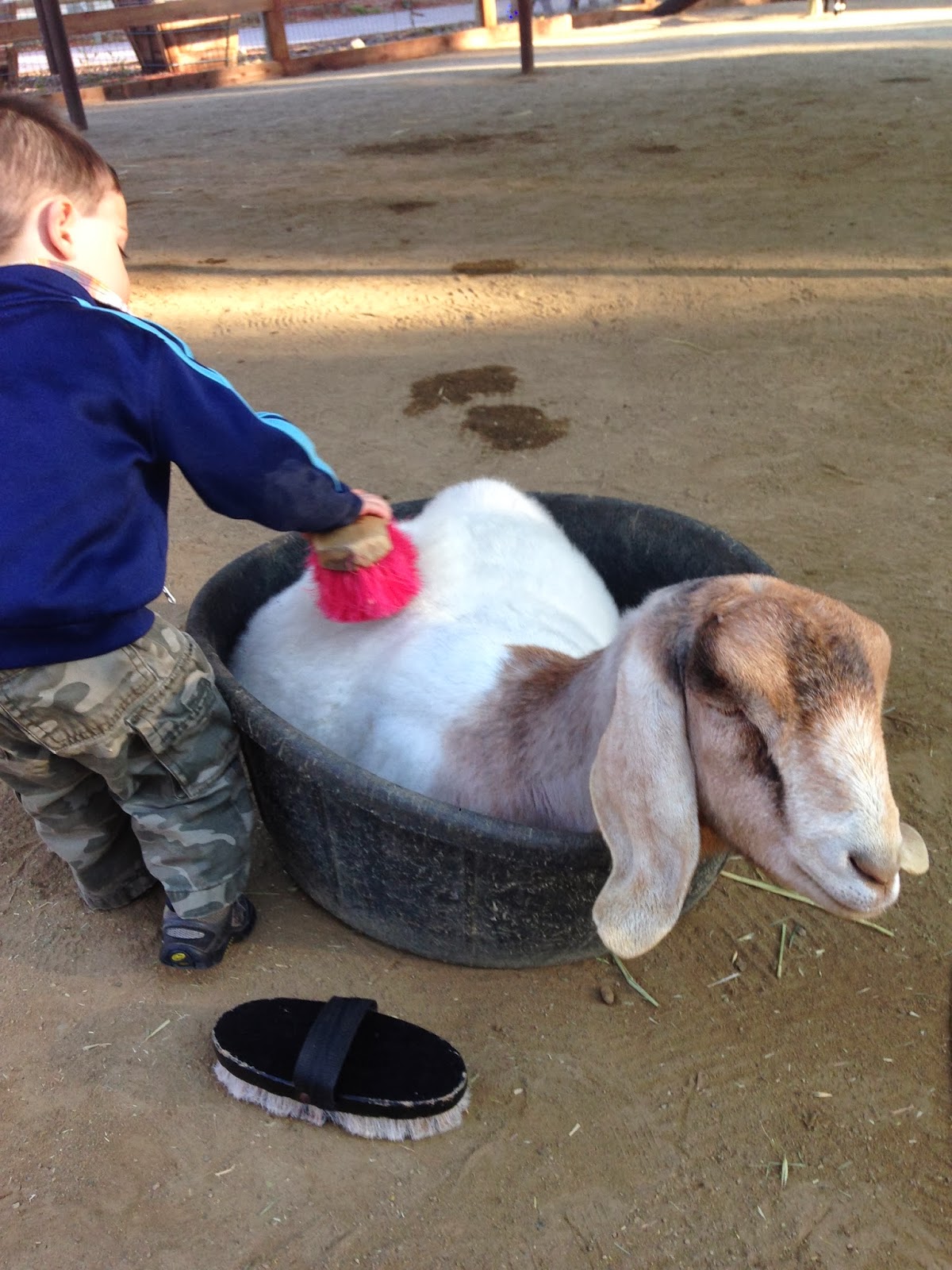 and he managed to find an animal in the petting area calm enough to sit through his attack: